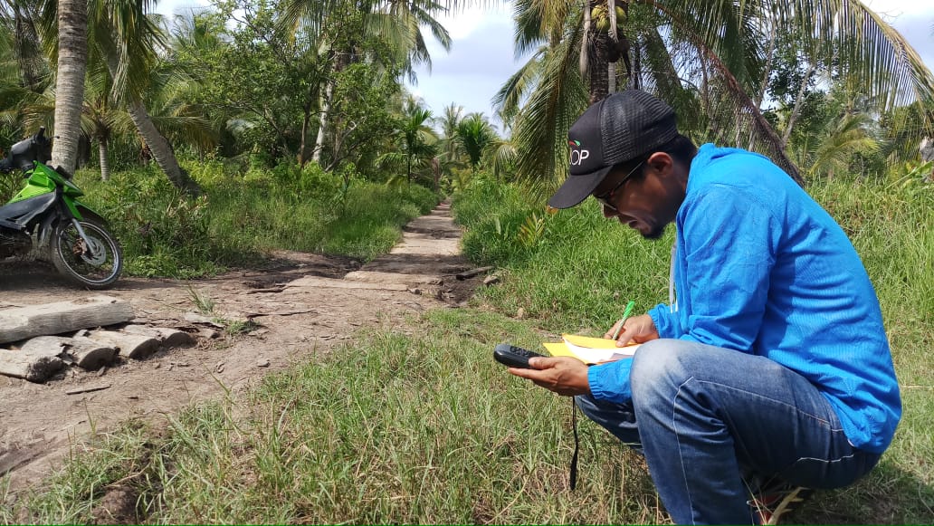 Foto: Tim survei rute Jelajah Ekowisata Solop (JES) 2018 mengambil titik GPS.