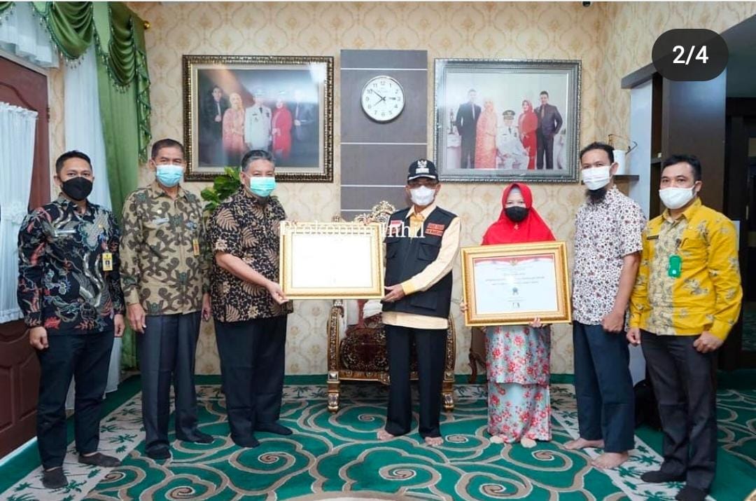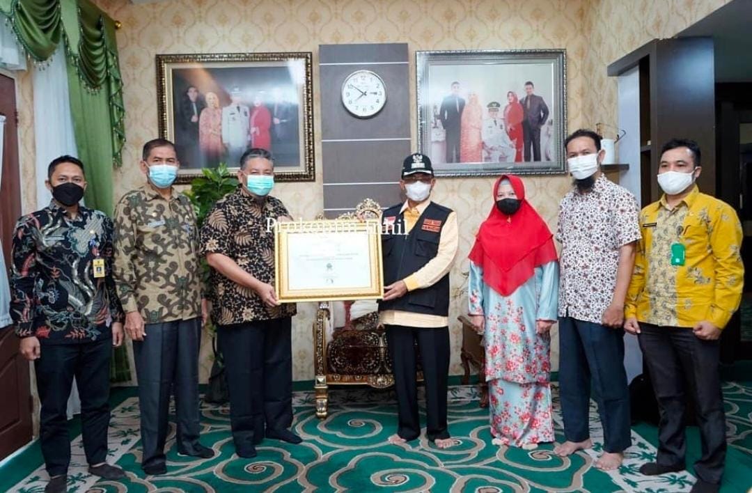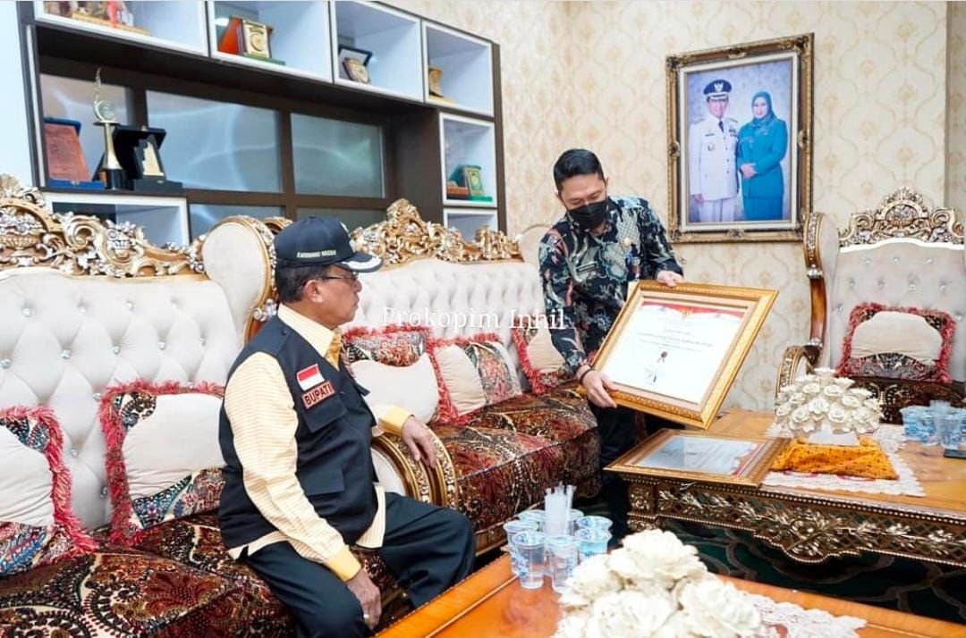 TRANSMEDIARIAU.COM - Bupati HM.Wardan, Kamis (6/5/2021) pagi di Rumah Dinas Bupati Jl.Kesehatan No.1 Tembilahan menerima sertifikat Sistem Akuntabilitas Kinerja Instansi Pemerintah (SAKIP) hasil evaluasi pelaksanaan Reformasi Birokrasi (RB) dan Akuntabilitas Kinerja Instansi Pemerintah Provinsi Kabupaten/Kota TH 2020 dari Menpan RB.