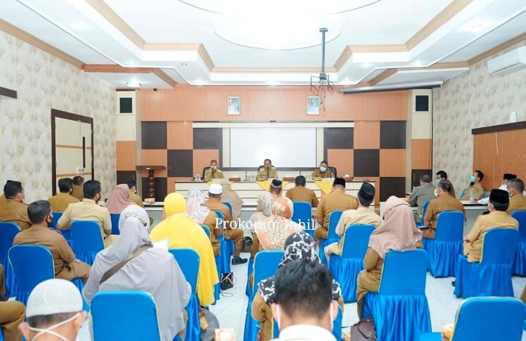 Rapat yang dilaksanakan dipimpin lansung Bupati HM.Wardan didampingi Wakil Bupati H.Syamsuddin Uti turut dihadiri Sekda Drs.Afrizal, Pimpinan OPD, Camat dan Lurah serta Kepala Desa yang ada di Lingkungan Pemkab Inhil dengan mengikuti himbuan Protkes.
