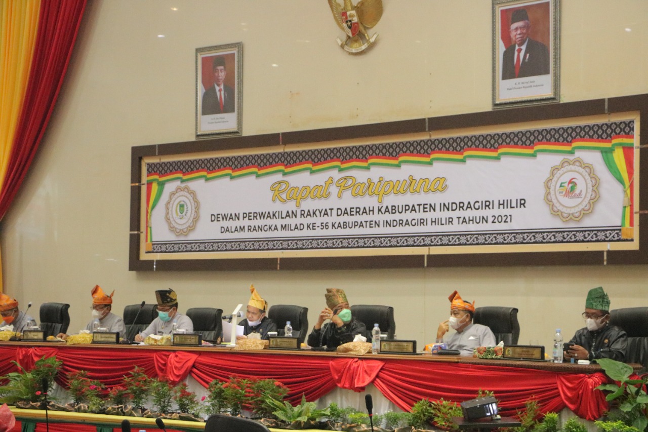 TRANSMEDIARIAU.COM, TEMBILAHAN - Puncak perayaan hari jadi Kabupaten Indragiri Hilir ke 56 tanggal 14 Juni 2021 ditandai dengan pelaksanaan Rapat Paripurna Istimewa DPRD Kabupaten Indragiri Hilir.