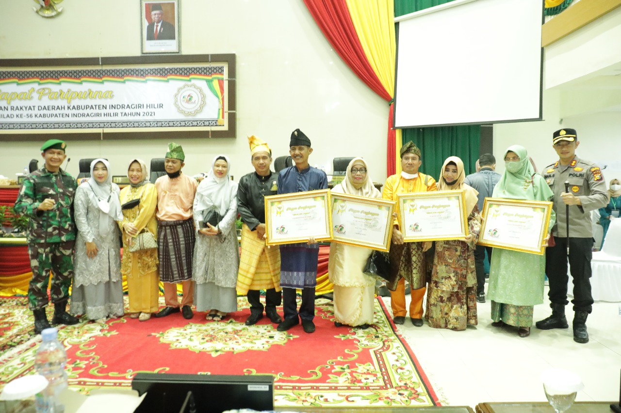 Foto Bersama Ketua DPRD Inhil, Dandim Inhil, Kapolres Inhil dan para pemenang Gemilang Award pada milad Inhil ke 56 Tahun 2021.