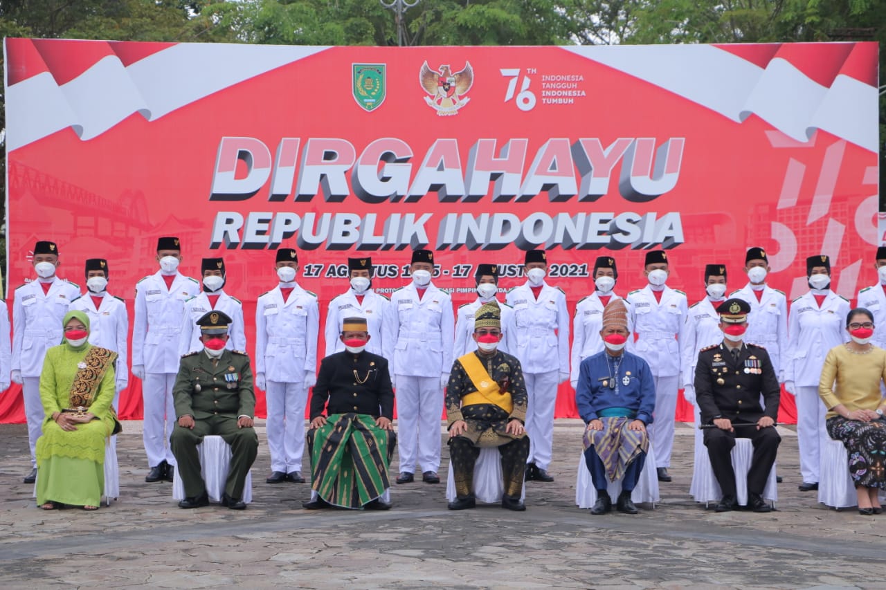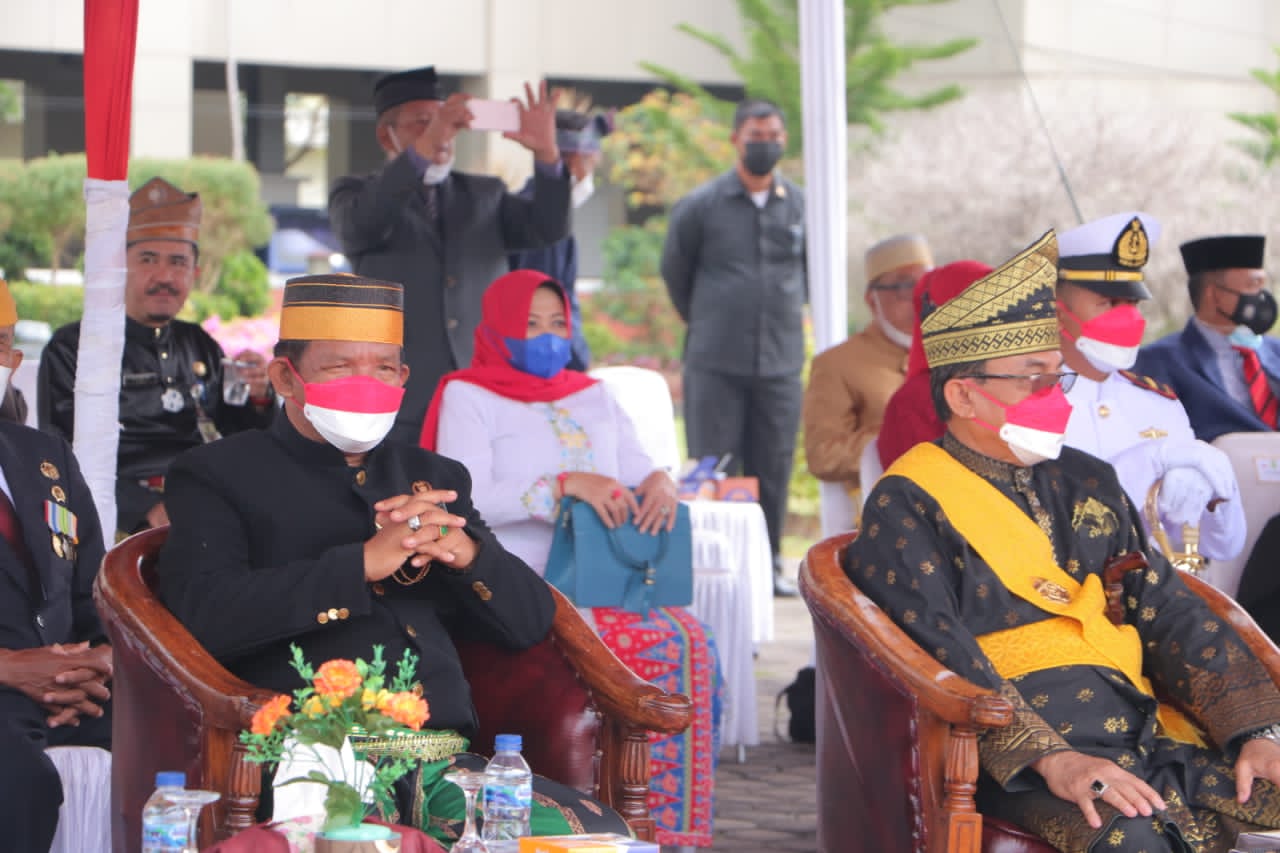 Bupati HM. Wardan yang bertindak selaku Inspektur Upacara pada HUT Proklamasi RI ke-76 tahun 2021 dengan menggunakan baju adat Melayu turut dihadiri Wakil Bupati H. Syamsuddin Uti, unsur pimpinan Forkopimda, unsur TNI-Polri, Sekda Inhil, Pimpinan OPD serta Veteran yang ada di Kabupaten Indragiri Hilir.