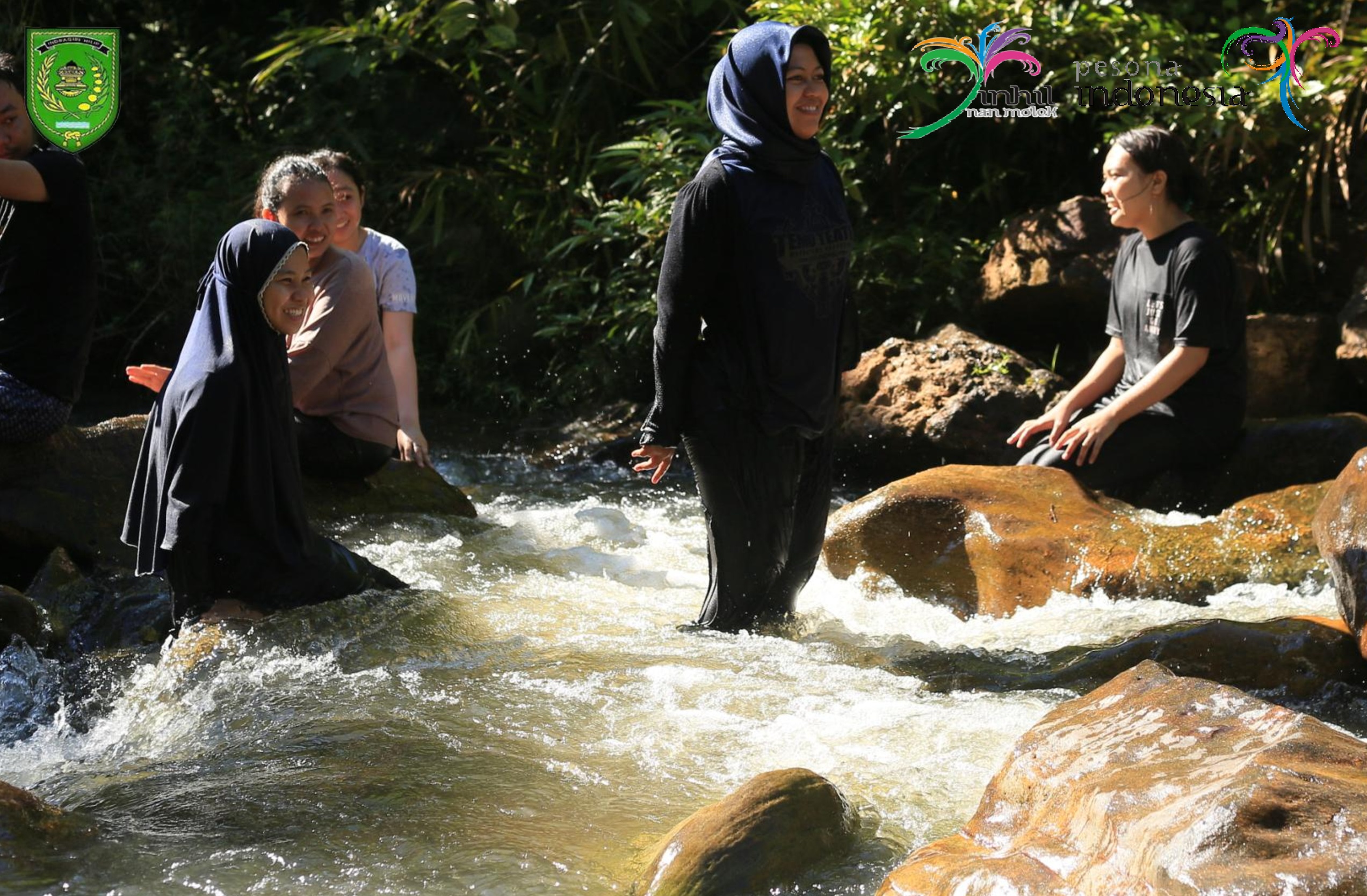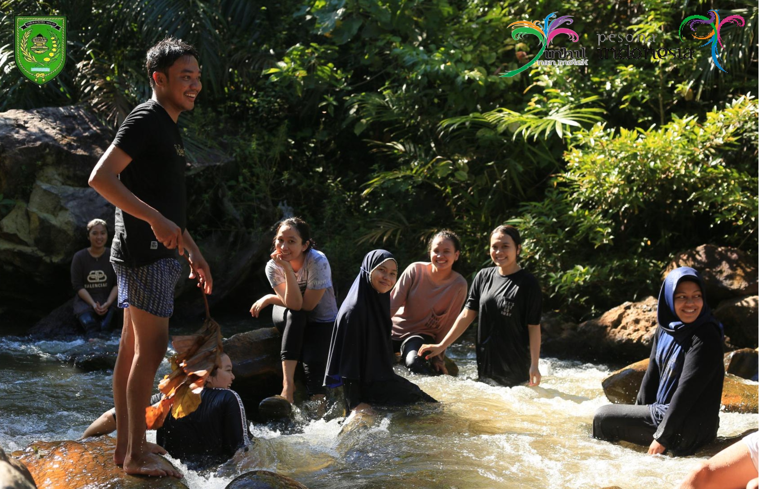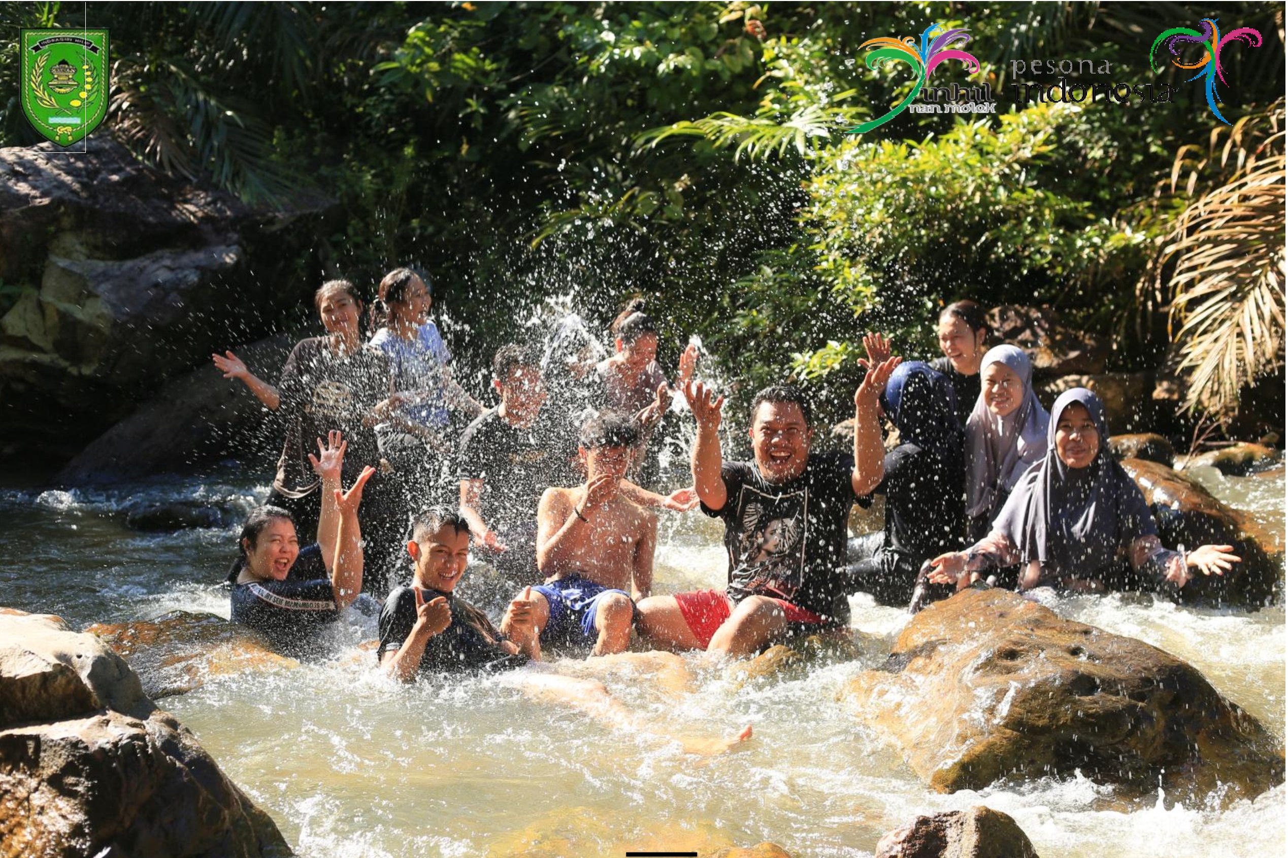 Momen Keseruan Para Pengunjung Wisata di Pemandian Batu Besar Indragiri Hilir