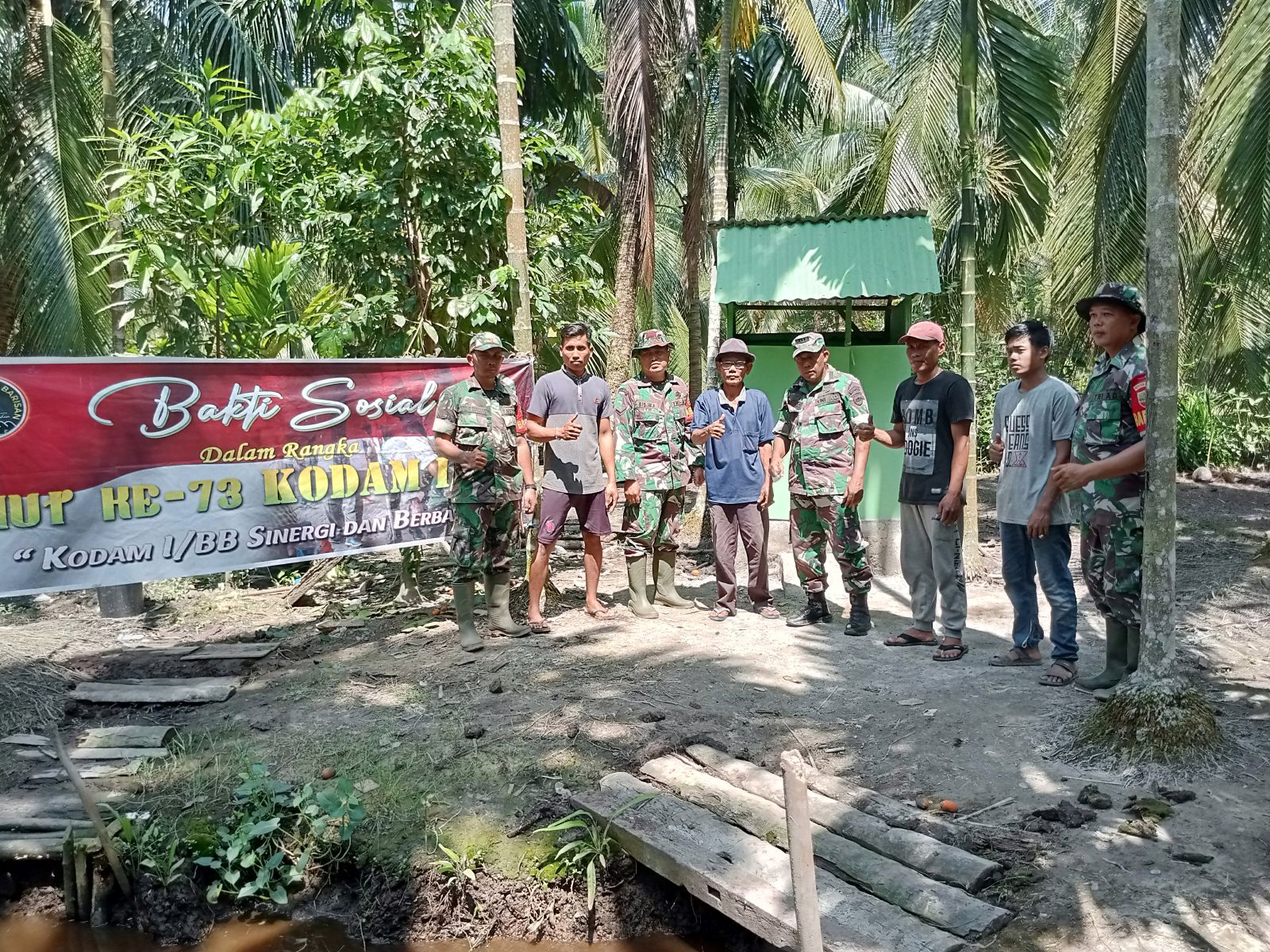 SUNGAI PIRING - Dalam rangka Hari Ulang Tahun(HUT) ke-73 Kodam 1/Bukit Barisan(BB),Kodim 0314/Inhil menyerahkan bantuan pembangunan RTLH (Rumah Tidak Layak Huni) milik warga kelurahan Sungai Piring kecamatan Batang Tuaka,Selasa(20/2023).
