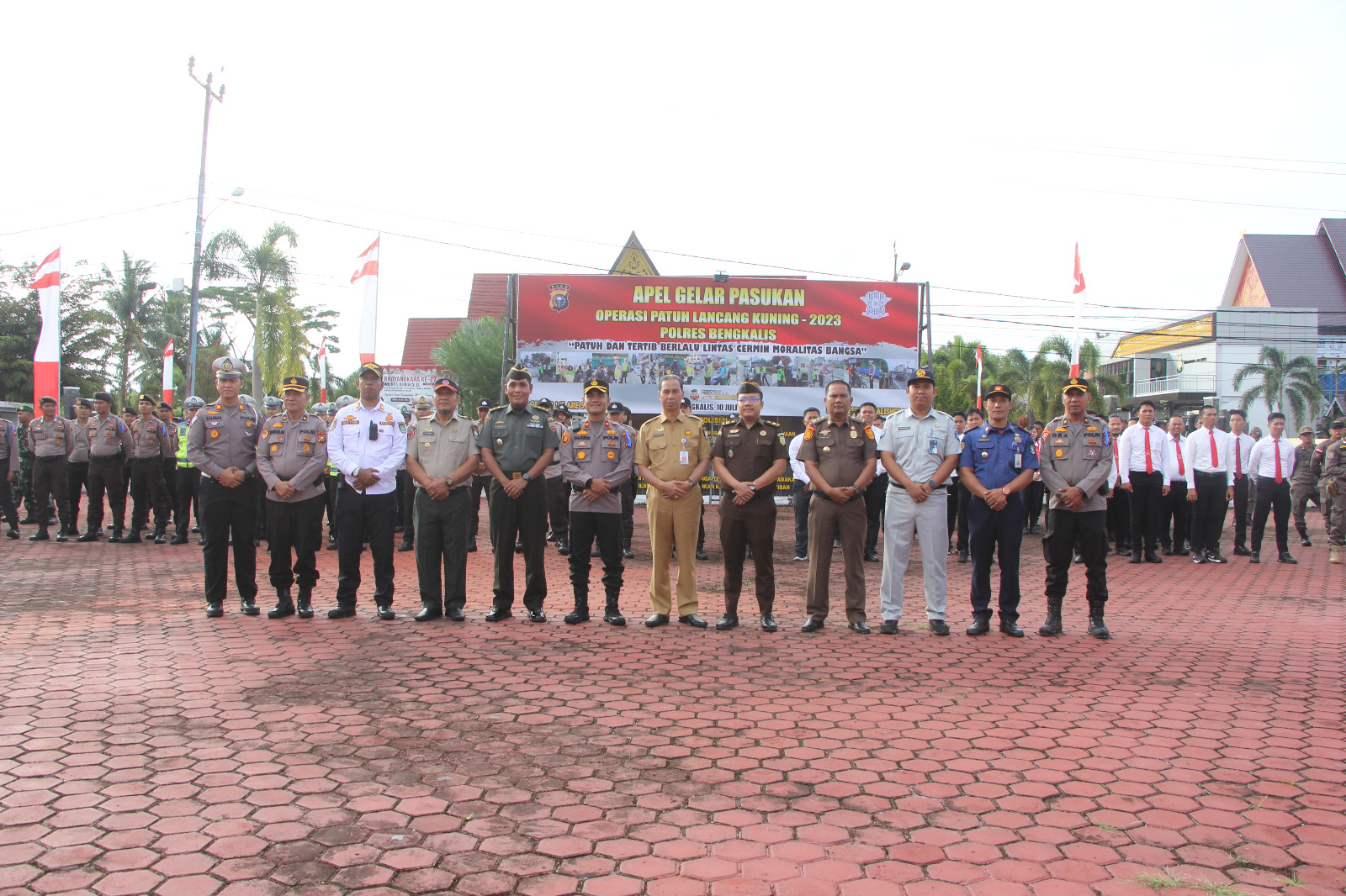 Bengkalis- Polres Bengkalis melaksanakan kegiatan Apel Gelar Pasukan Operasi Patuh "Lancang Kuning" 10 Juli 2023 pada hari Senin pagi. Kegiatan ini berlangsung di lapangan apel Polres Bengkalis yang terletak di Jl. Pertanian Desa Senggoro, Kecamatan Bengkalis, Kabupaten Bengkalis. Apel gelar pasukan ini dihadiri oleh sejumlah tokoh penting dan instansi terkait.