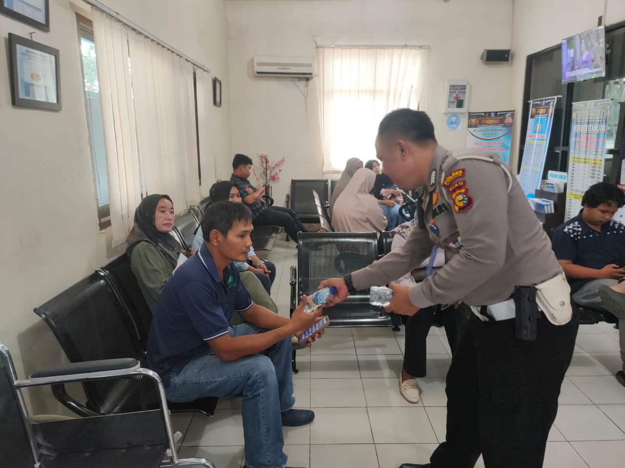 TRANSNEDIARIAU.COM - 06 Maret 2024. Satuan Lalu Lintas (Satlantas) Polres Bengkalis - Polda Riau, beri air minum kepada pemohon SIM yang mana sebagai bentuk kepedulian kepada masyarakatnya.