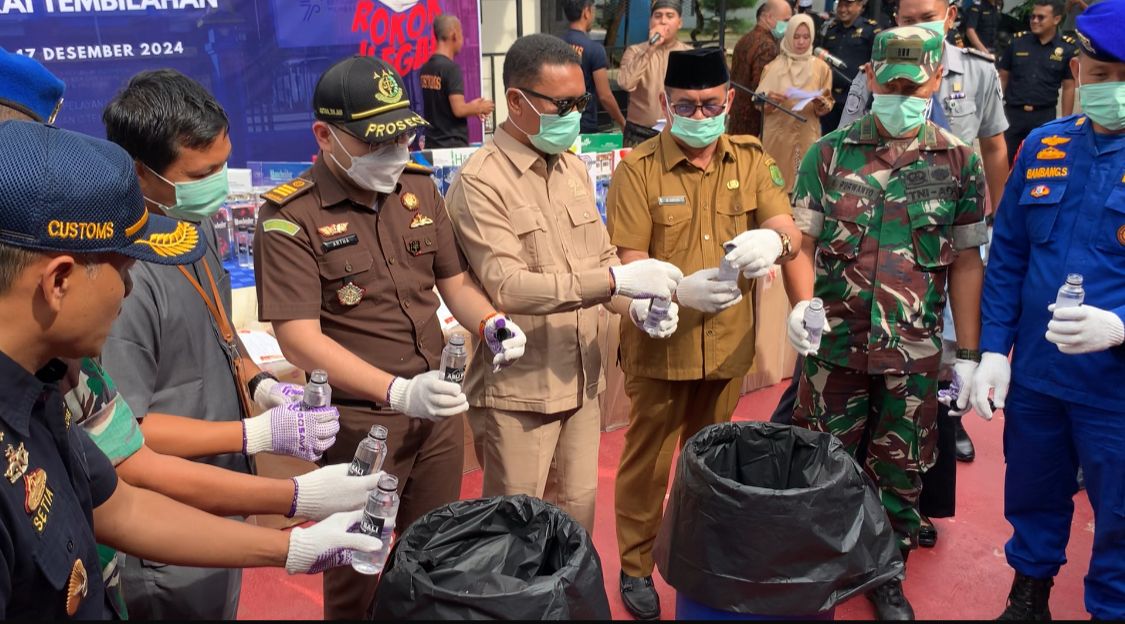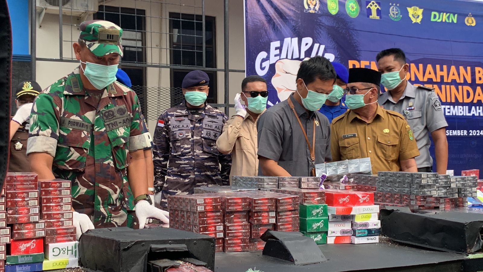 INHIL - Pasi Ops Kodim 0314/Inhil Kapten Arh Agus Purwanto, mewakili Komandan Kodim 0314/Inhil, Letkol Inf Fikky Nur Kuncoro Jati, S.H., M.Han., menghadiri pemusnahan Barang yang Menjadi Milik Negara(BMMN) hasil penindakan periode bulan Maret sampai dengan November 2024 yang sebagian besar adalah rokok ilegal. Pemusnahan tersebut dilaksanakan di kantor Bea Cukai Tembilahan, Selasa (17/12/2024).