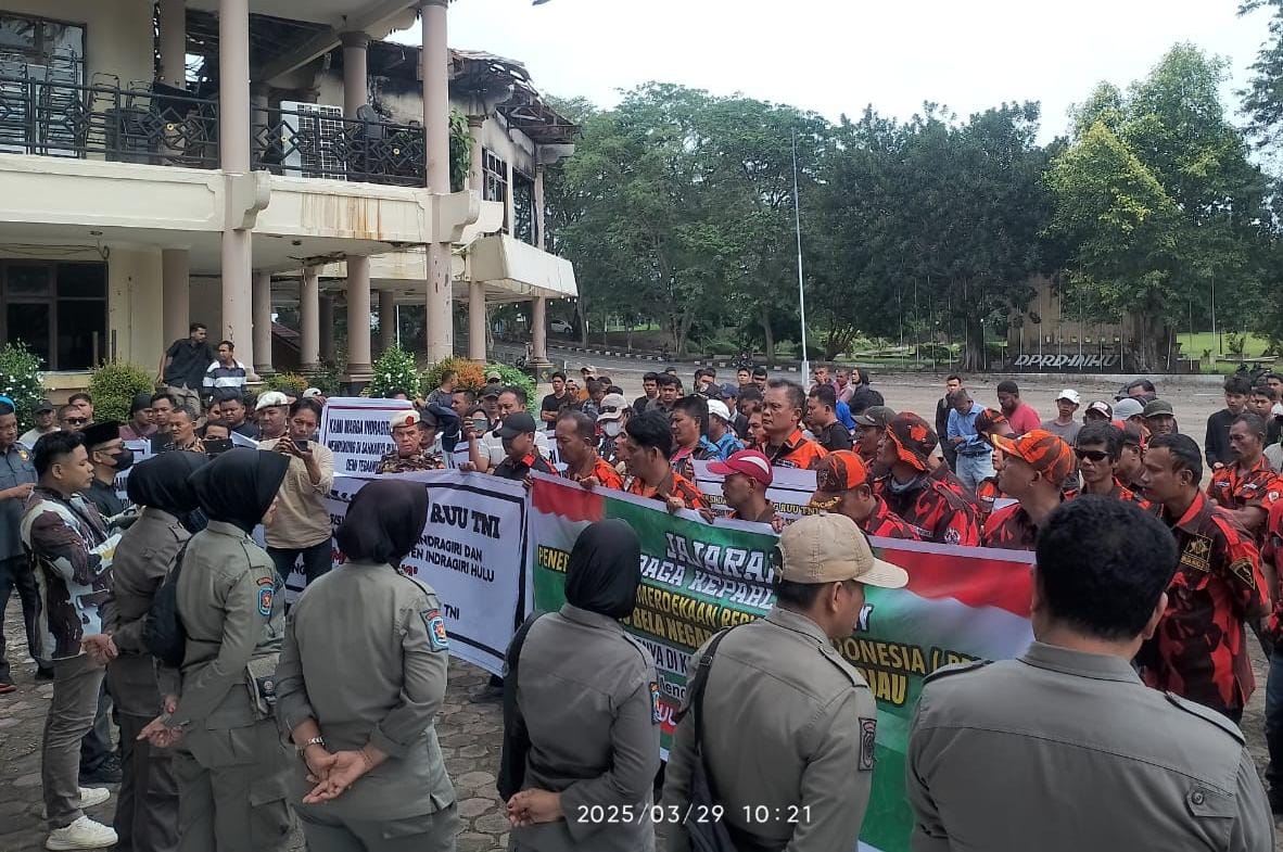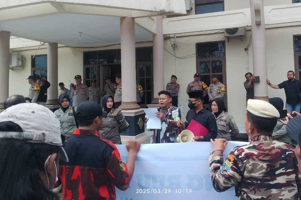 TRANSMEDIARIAU.COM, INHU - Aliansi Mahasiswa bersama sejumlah organisasi masyarakat di Kabupaten Indragiri Hulu melakukan aksi damai di Kantor DPRD Indragiri Hulu, Sabtu (29/3/25).