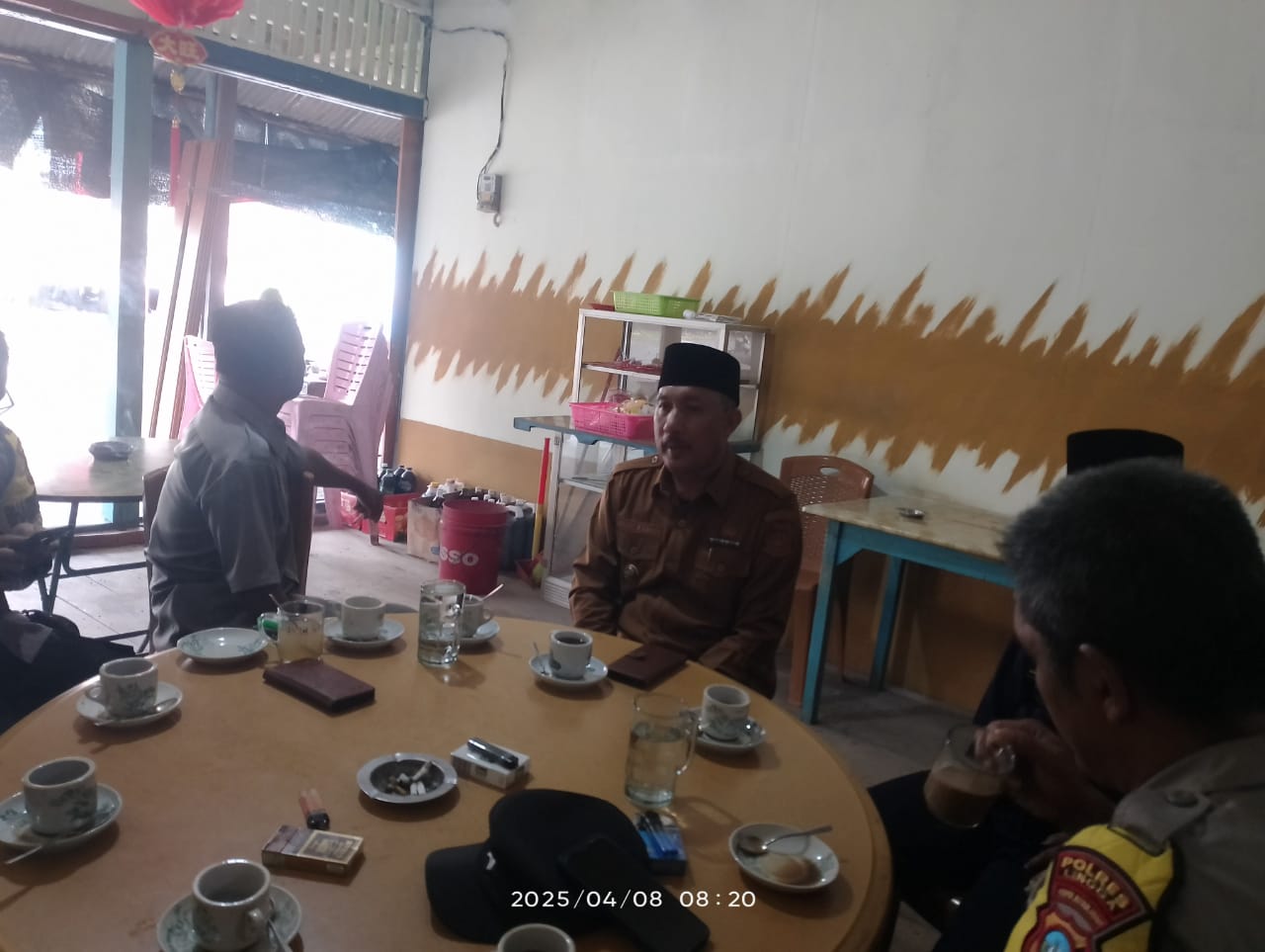 TRANSMEDIARIAU.COM, Lingga - Kapolsubsektor Kecamatan Selayar, Aiptu Andi saputra, menggelar acara ngopi bareng dengan masyarakat Kecamatan Selayar di sebuah warung kopi yang berada di desa penuba kecamatan selayar. Acara tersebut bertujuan untuk menjalin silaturahmi dan meningkatkan komunikasi antara polisi dan masyarakat. Selasa (08/04/2025)