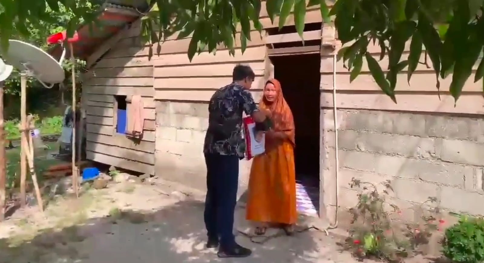 Salah satu warga penerima bantuan mengucapkan terima kasih atas bantuan yang diberikan oleh Kapolres Lingga dan jajarannya.