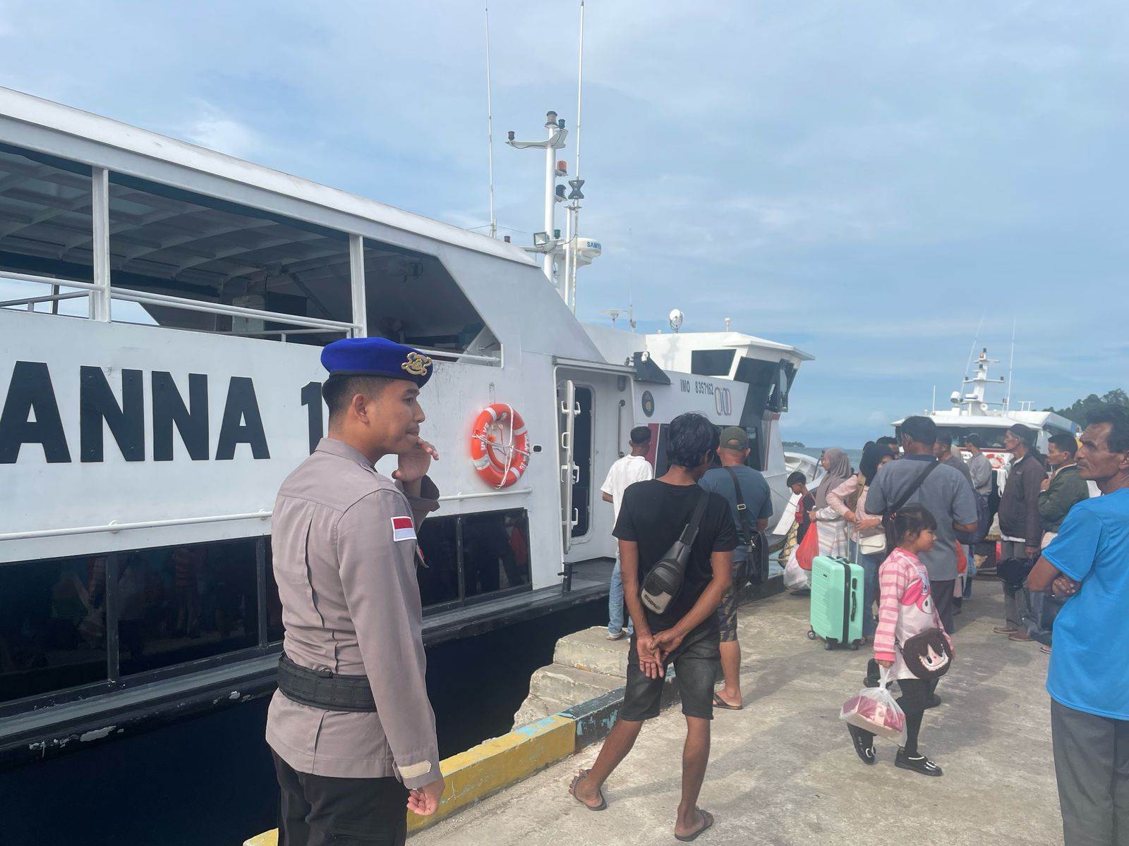 TRANSMEDIARIAU.COM, Lingga - Guna menjamin rasa aman dan nyaman bagi masyarakat, Satuan Polisi Perairan dan Udara (Satpolairud) Polres Lingga terus memperkuat pengamanan di titik-titik strategis jalur laut. Salah satunya melalui kegiatan pengamanan rutin terhadap penumpang kapal ferry di Dermaga Pelabuhan Penyeberangan Jagoh, Kecamatan Singkep Barat, Kabupaten Lingga. Selasa, (15/4/2025)