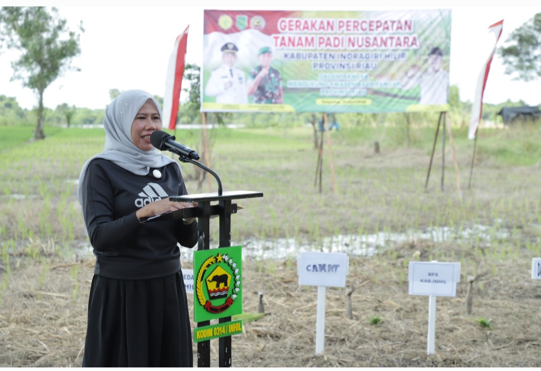 TRANSMEDIARIAU.COM - Pangkalan Tujuh, Wakil Bupati Indragiri Hilir Yuliantini, S.Sos, M.Si menghadiri acara Gerakan Percepatan Tanam Padi Nusantara Kabupaten Indragiri Hilir dalam rangka mendukung swasembada pangan provinsi Riau yang dilaksanakan di kelurahan Pangkalan Tujuh kecamatan Tempuling, Kamis (24/04/2025).