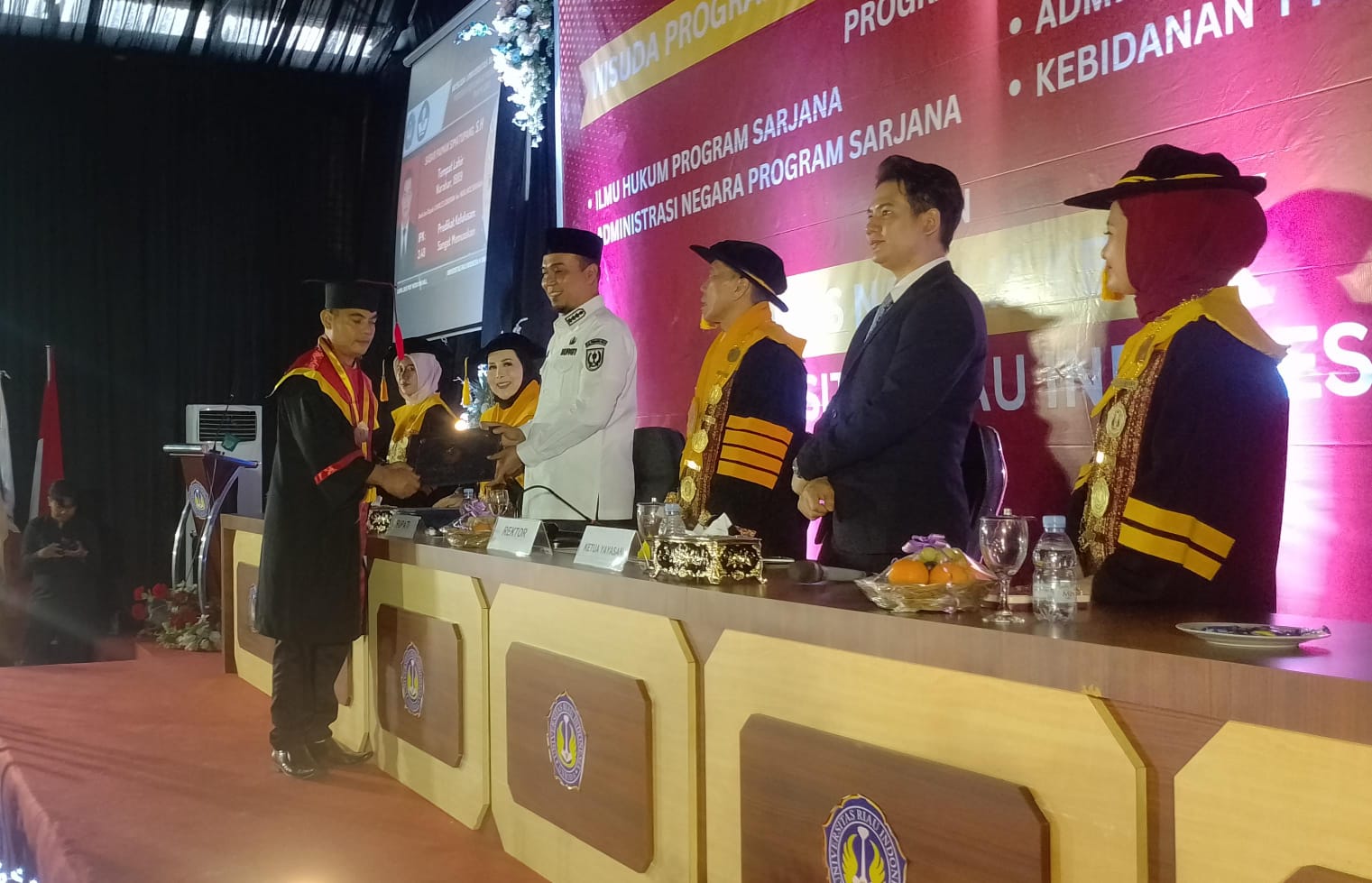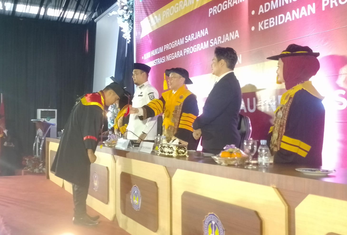 Ia berhasil meraih sarjana hukum dengan gelar SH bersama lebih dari tiga puluhan mahasiswa lainnya dalam prosesi wisuda yang digelar UNRIDA pada Rabu (30/4) siang.