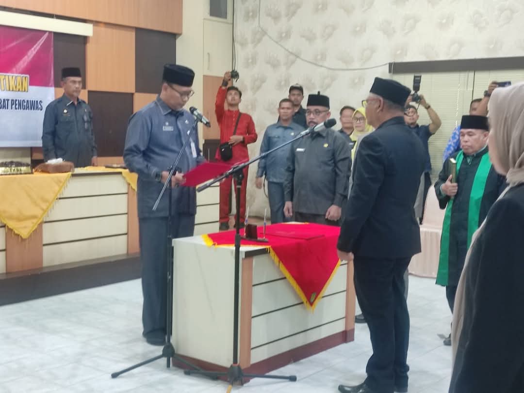 Pelantikan dan pengambilan sumpah jabatan oleh Bupati Inhil, Haji Herman, yang diwakili Sekretaris Daerah (Sekda) Inhil, Tantawi Jauhari, berlangsung khidmat di Aula Kantor BAPPEDA Inhil.
