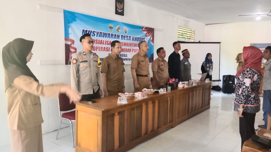 TRANSMEDIARIAU.COM, Lingga - Dalam upaya memperkuat perekonomian masyarakat desa, Bhabinkamtibmas Desa Penuba, BRIPTU Andika Laksono, turut mendampingi kegiatan Musyawarah Desa Khusus Sosialisasi dan Pembentukan Koperasi Desa Merah Putih yang digelar di Balai PKK Desa Penuba, Kecamatan Selayar, Kabupaten Lingga, Selasa (19/5/2025).