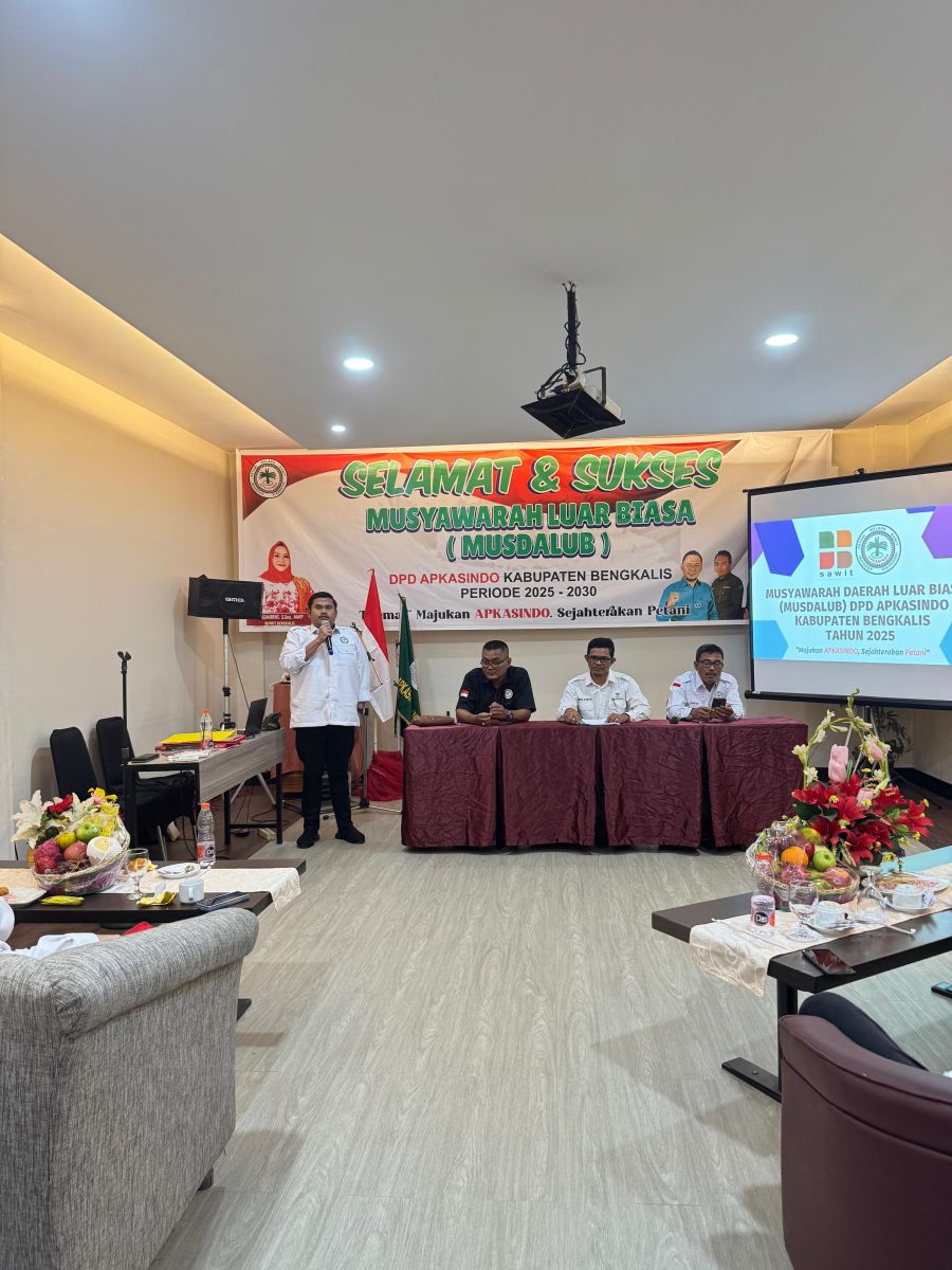 BENGKALIS, TR!NSMEDIARIAU.com - Dalam musyawarah yang berlangsung penuh kekeluargaan, Septian Nugraha resmi terpilih secara aklamasi sebagai Ketua Dewan Pimpinan Kabupaten (DPK) Asosiasi Petani Kelapa Sawit Indonesia (APKASINDO) Kabupaten Bengkalis.