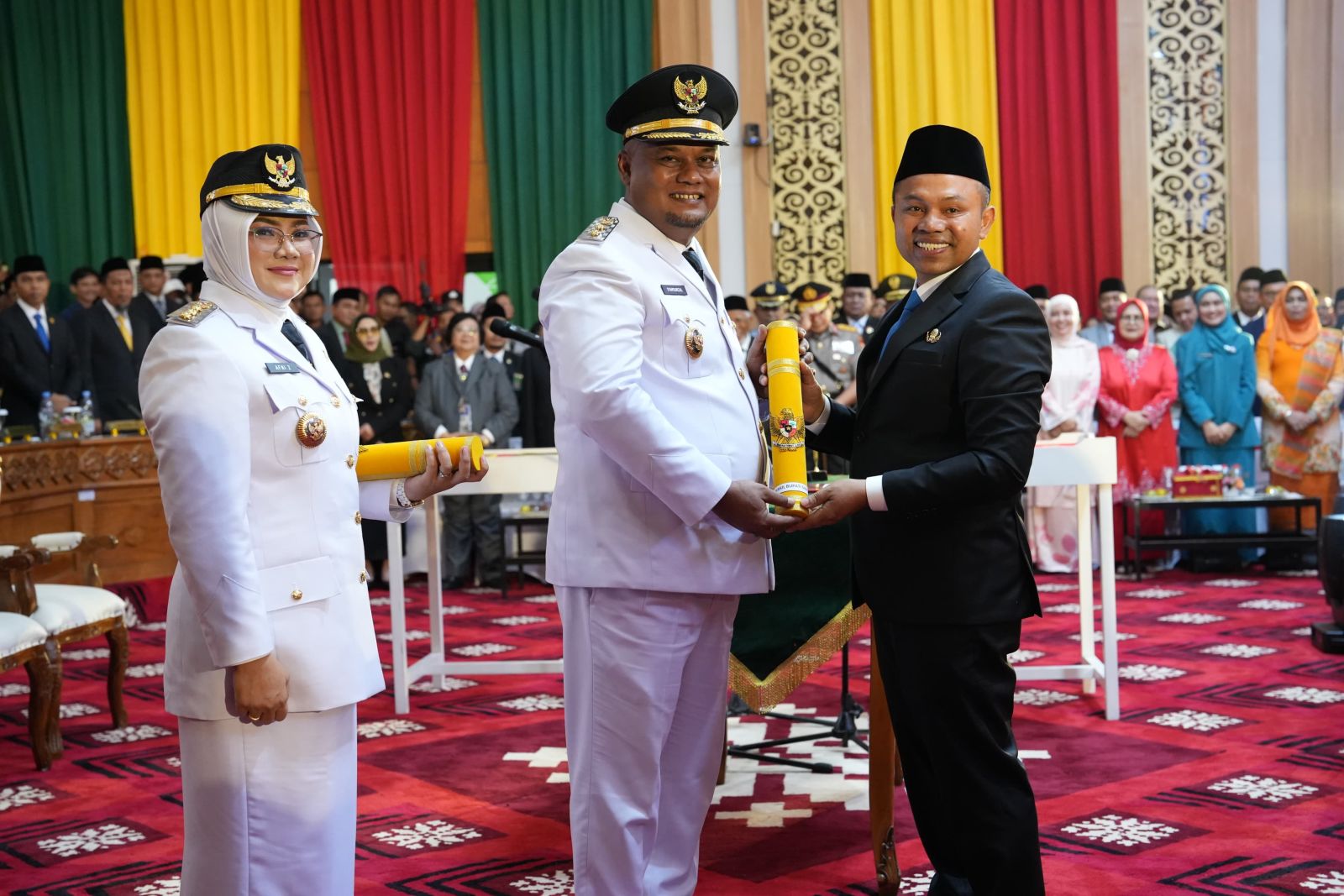 SIAK, TRANSMEDIARIAU.COM- Wakil Bupati Bengkalis Bagus Santoso hadiri pelantikan Bupati dan Wakil Bupati Siak Dr. Afni dan Syamsurizal periode 2025-2030 di Gedung DPRD Siak, Rabu, 4 Juni 2025.
