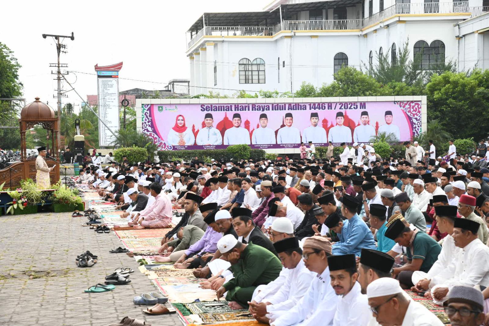 Ungkapan itu disampaikannya ketika memberikan sambutan pada pelaksanaan Sholat Idul Adha 1446 Hijriyah, di Lapangan Tugu Bengkalis, Jumat, 6 Juni 2025.