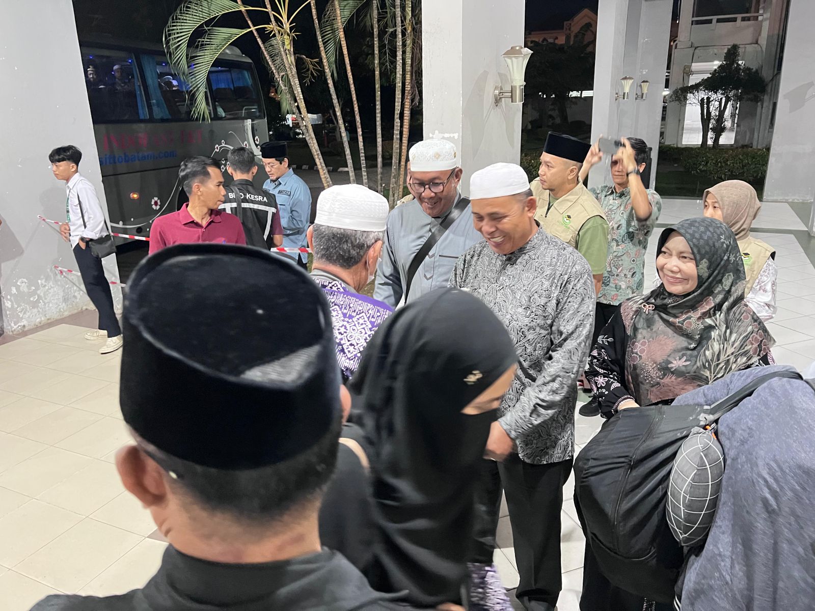 TRANSMEDIARIAU.COM - Tangis haru dan lantunan dzikir mewarnai suasana dini hari di Asrama Haji Batam Centre, Kamis, 19 Juni 2025. Sebanyak 445 jamaah haji Kloter 07 asal Kabupaten Indragiri Hilir akhirnya tiba di tanah air setelah menunaikan rukun Islam kelima. Suasana penuh emosi menyambut kepulangan para tamu Allah ini.