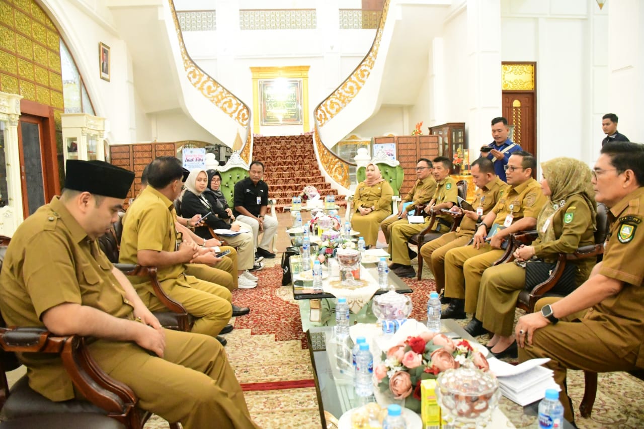 BENGKALIS, TRANSMEDIARIAU. COM- Bupati Bengkalis Kasmarni menerima kunjungan audiensi Kepala LPP TVRI Stasiun Riau, Didik Kusjadmika didampingi Kepala Pengembangan Usaha Sri Pujiastuti dan staf Rihadhatul'aisy Syam di rumah aspirasi, Wisma Daerah Sri Mahkota Bengkalis. Senin, 16 Juni 2025.