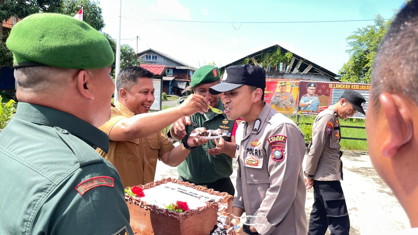 "Kami dari Kesbangpol yang mewakili Pemerintah Daerah Kab. lingga dan Koramil 05/Daik turut mengucapkan selamat Hari Bhayangkara ke-79 tahun 2025 kepada seluruh anggota Polsek Daik Lingga. Semoga semangat Bhayangkara dalam melayani dan melindungi masyarakat tetap terjaga," serta Polri untuk masyarakat ujar KAPTEN Inf. D. Sihombing selaku Danramil 05/Daik dengan penuh semangat.