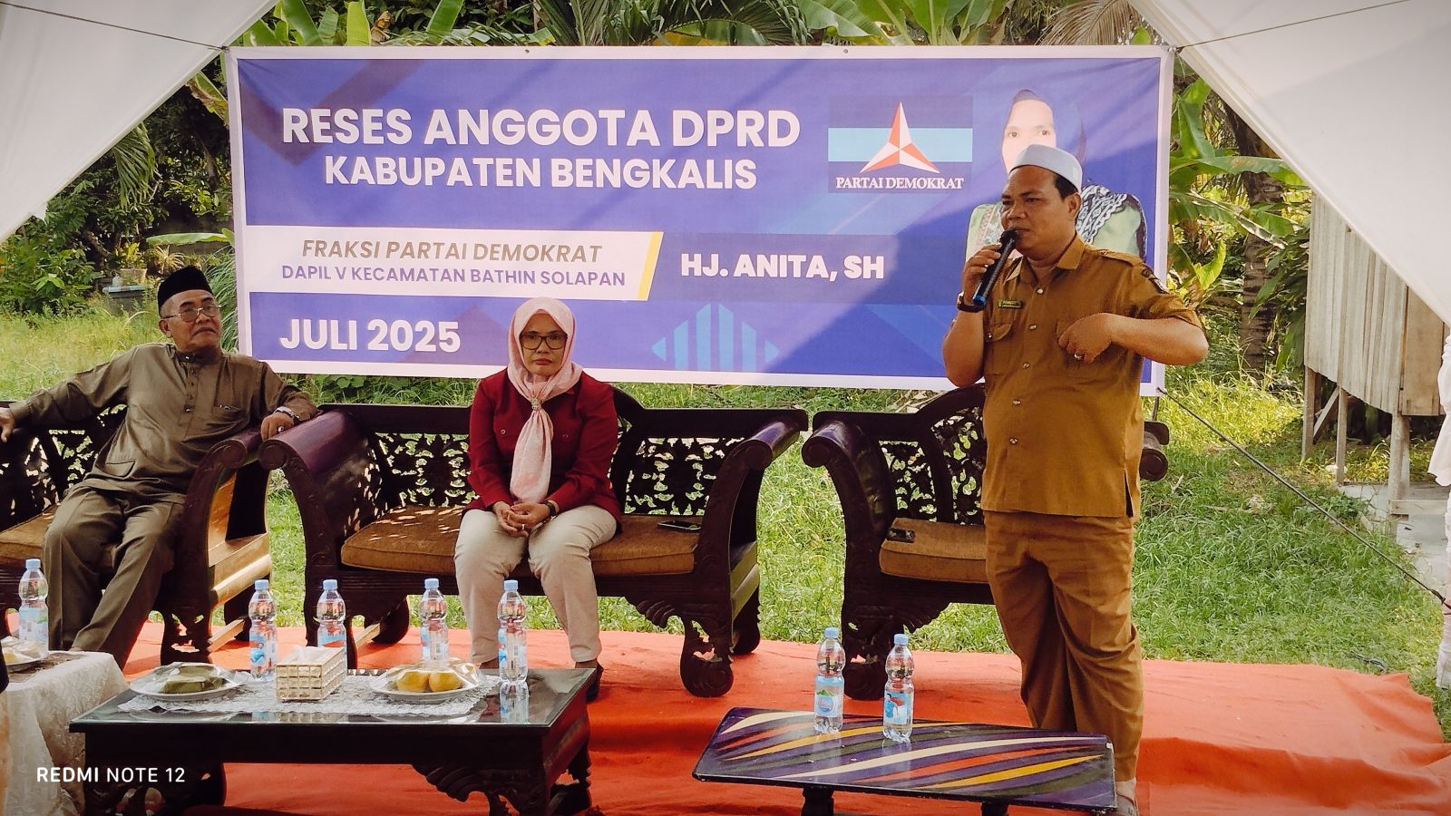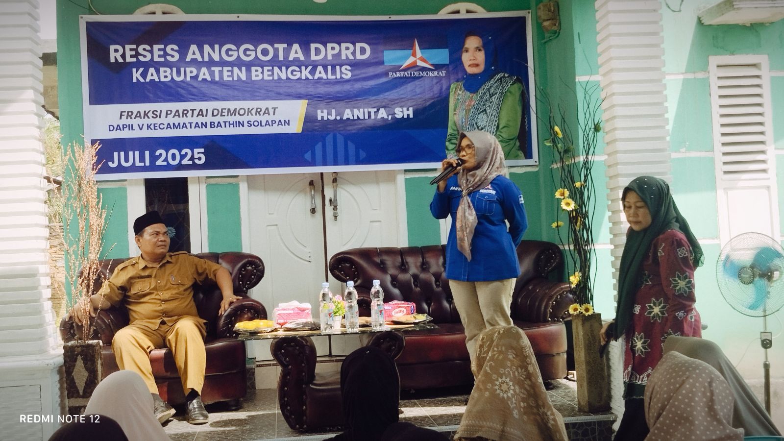 BATHIN SOLAPAN, TRANSMEDIARIAU. Com- Memasuki masa reses pada bulan Juli 2025, anggota DPRD Kabupaten Bengkalis dari fraksi Demokrat, Hj. Anita SH mendengar aspirasi warga untuk disampaikan kembali kepada pemerintah. Melalui reses, anggota DPRD Dapil V Kecamatan Bathin Solapan ini mendatangi warga dari satu desa ke desa lainnya.