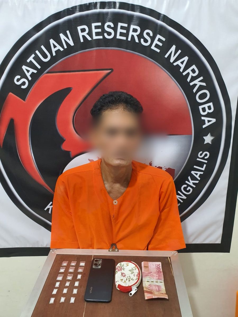 BATHIN SOLAPAN, TRANSMEDIARIAU. Com - Sat Res Narkoba Polres Bengkalis Polda Riau, kembali berhasil mengungkap tindak pidana penyalahgunaan narkotika jenis sabu. Tersangka berinisial Jm (57) beralamat di Jl. Rejosari diketahui warga Desa Air Kulim Kecamatan Bathin Solapan berhasil diringkus Minggu ( 13/7/25).