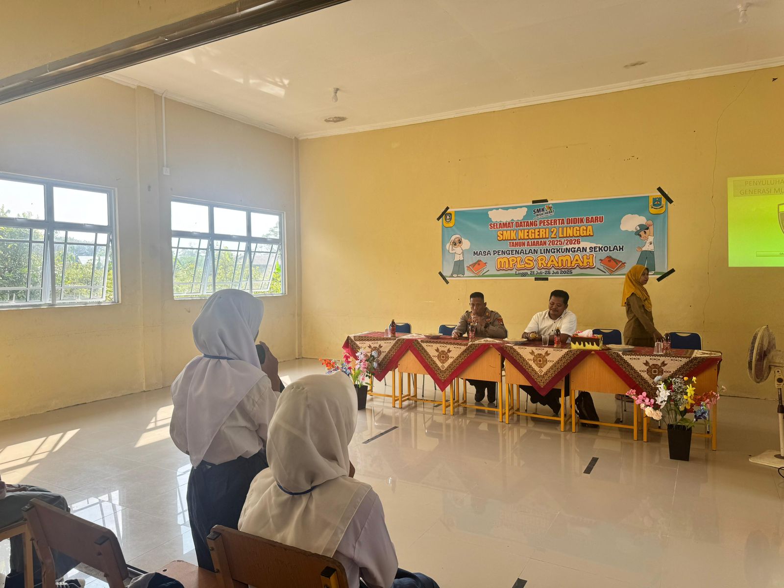Polsek Daik Lingga Berikan Pembekalan Bahaya Narkoba dalam Kegiatan MOS di SMK Negeri 2 Lingga.