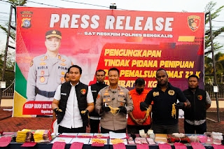 MANDAU, TRANSMEDIARIAU. COM- Satuan Reskrim Polres Bengkalis berhasil ungkap kriminal pelaku penipuan penjualan emas palsu di Kota Duri.