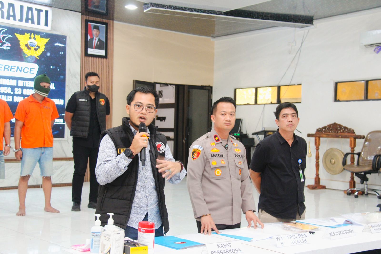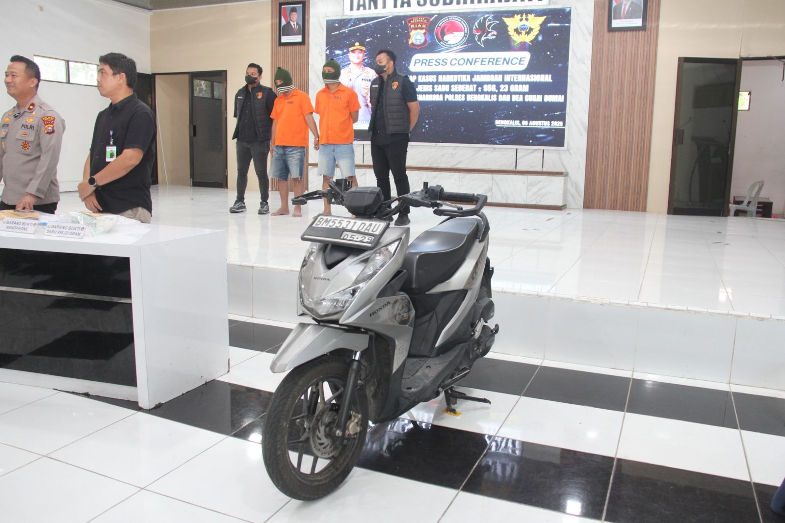 Melalui Press Release Waka Polres Bengkalis, Kompol Anton Rama Putra dalam jumpa pers pada Jumat (8/8/25), menyampaikan bahwa dua tersangka yakni Desmon Uli Simanjuntak alias Desmon (DUS), dan S. Frank, ditangkap saat berada di atas sepeda motor di Jalan Hang Tuah, Gang Jambu, Kelurahan Air Jamban, Kecamatan Mandau, Kabupaten Bengkalis.