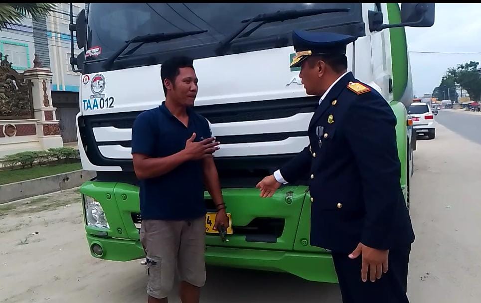 TRANSMEDIARIAU.COM, INHU - Dinas Perhubungan (Dishub) Kabupaten Indragiri Hulu (Inhu) melakukan penertiban kendaraan Over Dimension Over Loading (ODOL) yang parkir di bahu jalan, Rabu sore (17/9/25).