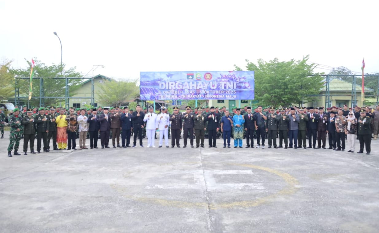 BENGKALIS, TRANSMEDIARIAU.COM - Bupati Bengkalis menghadiri upacara peringatan Hari Ulang Tahun (HUT) ke-80 Tentara Nasional Indonesia (TNI) di lapangan upacara Kodim 0303/Bengkalis. Minggu, 5 Oktober 2025.