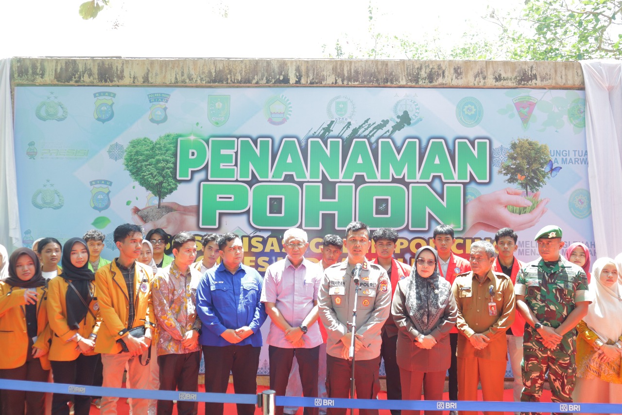 Selain penanaman pohon, kegiatan juga diisi dengan sesi sosialisasi mengenai pentingnya kesadaran lingkungan, ramah tamah, dan makan bersama seluruh peserta. Suasana kebersamaan antara jajaran kepolisian, mahasiswa, dan masyarakat tampak hangat dan penuh semangat.