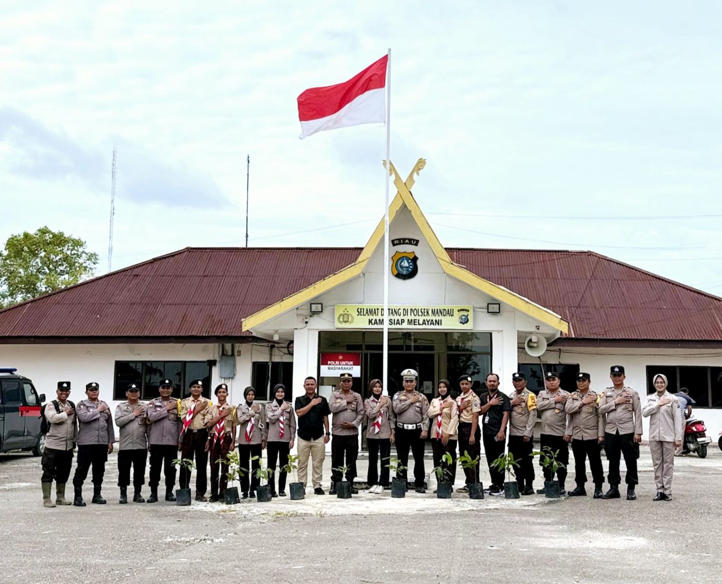 Kapolsek Mandau Kompol Primadona,SIK menyampaikan, kegiatan ini sebagai bentuk peduli lingkungan, yang juga melibatkan gerakan Pramuka Saka Bhayangkara untuk menanam pohon sebagai upaya melestarikan alam, mencegah bencana, dan memperbaiki kualitas udara.