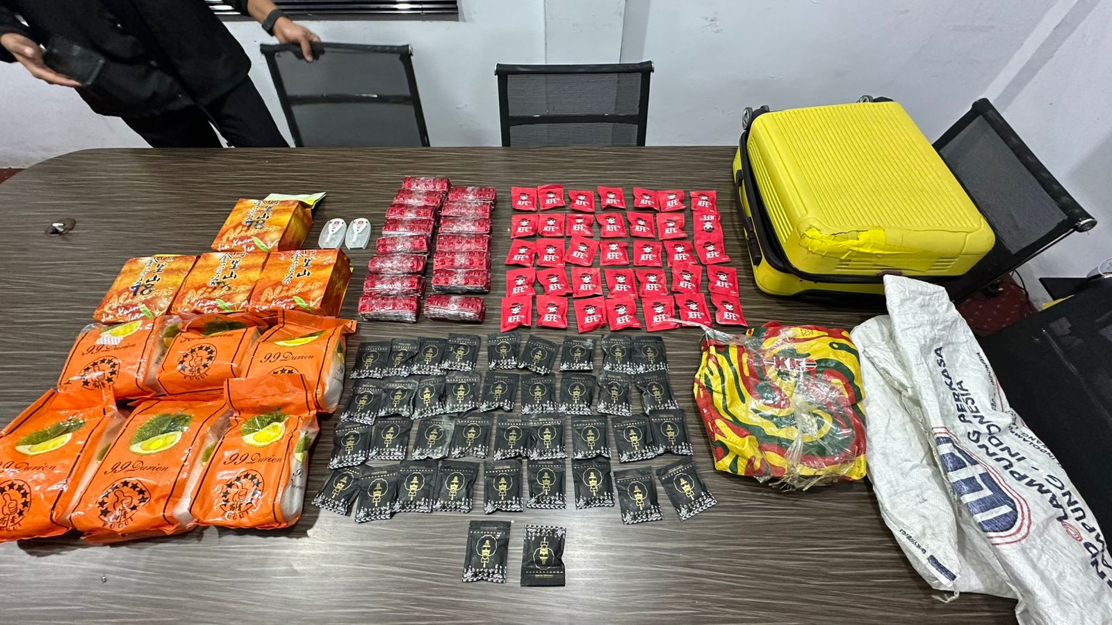 - ⭐73 ( Tujuh Puluh Tiga ) Bungkus diduga berisikan narkotika jenis Canabis Flower, dengan rincian 38 Bungkus warna hitam dan 35 Bungkus warna merah