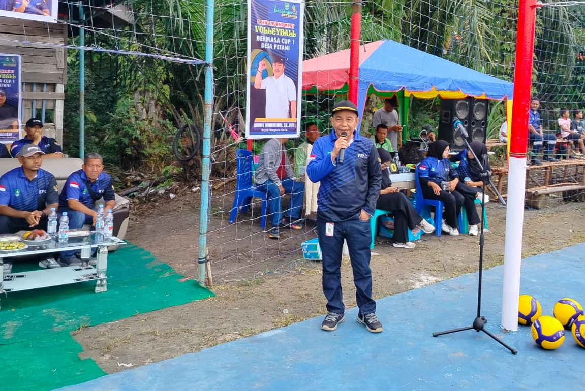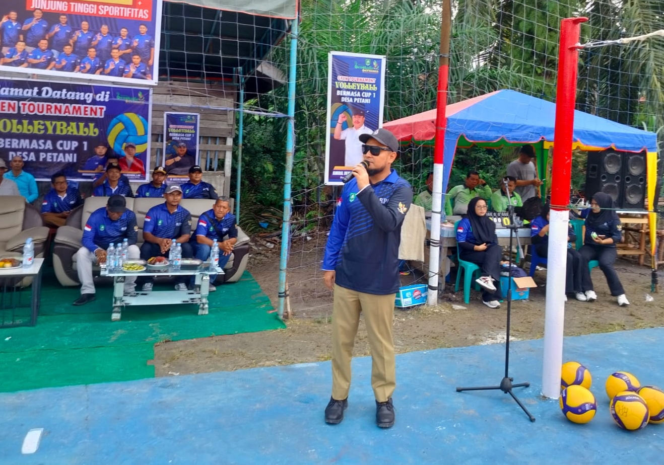 BATHIN SOLAPAN, TRANSMEDIARIAU. COM - Melalui Program Dana Bermasa (Bermarwah Maju Sejahtera) tahun 2025, Desa Petani, Kecamatan Bathin Solapan, PJ Kades Ali Ridwan menggelar Open Tournament volley Ball putra - putri Cup I yang diresmikan langsung oleh Camat Muhammad Rusydy.