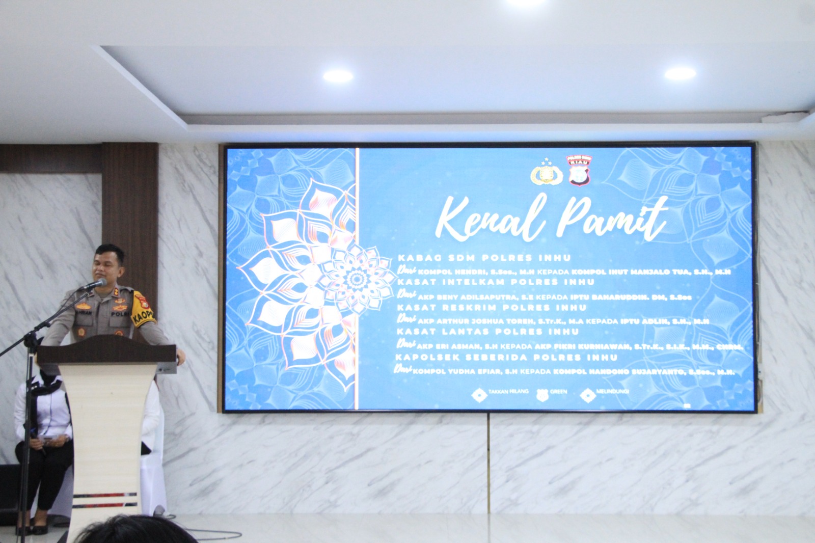 Adapun pejabat yang melaksanakan serah terima jabatan yakni Kabag SDM, Kasat Reskrim, Kasat Lantas, Kasat Intelkam Polres Inhu serta Kapolsek Seberida.