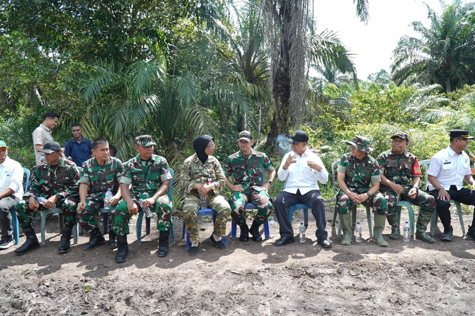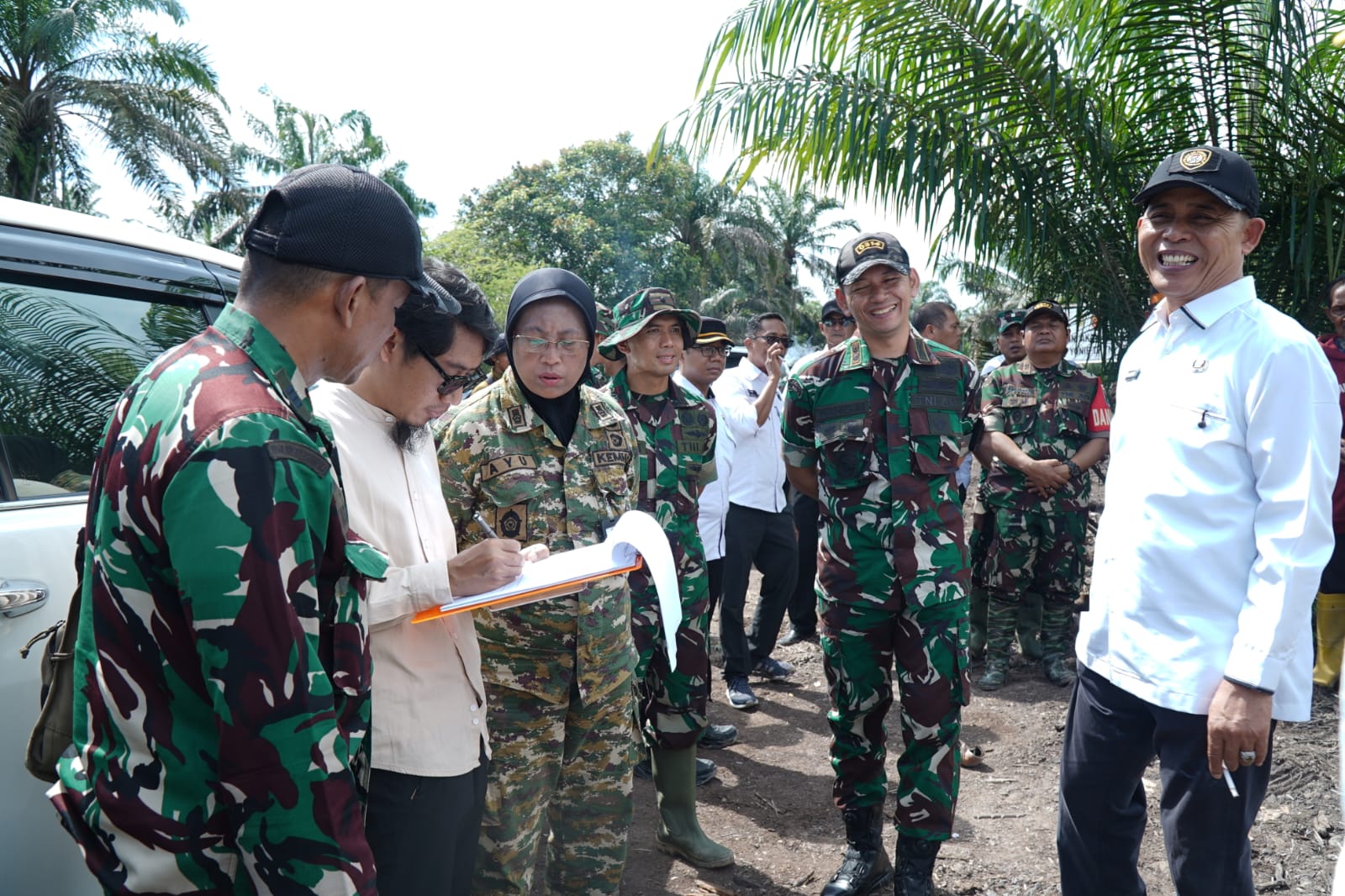 Dalam peninjauan tersebut, rombongan melihat langsung kondisi lahan yang akan digunakan sebagai lokasi pembangunan Yon TP 953/Harimau Rawa.