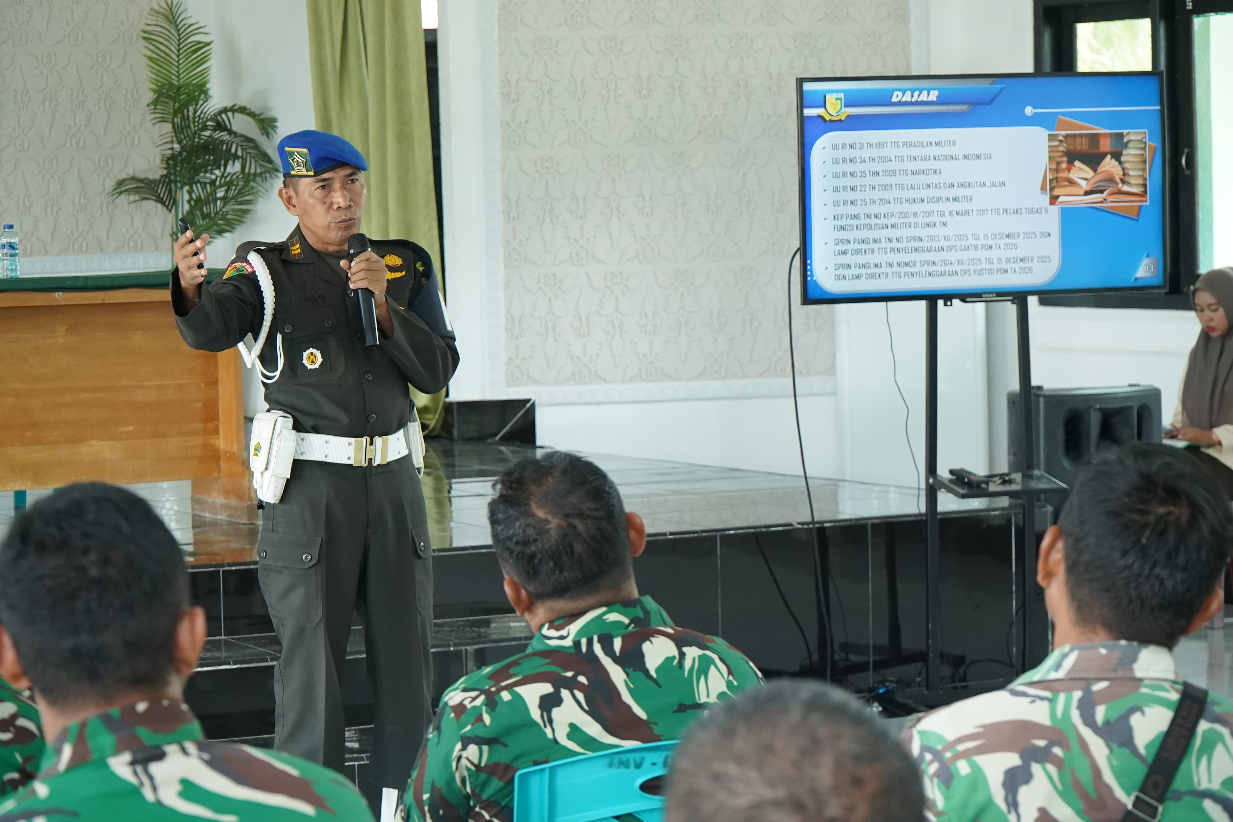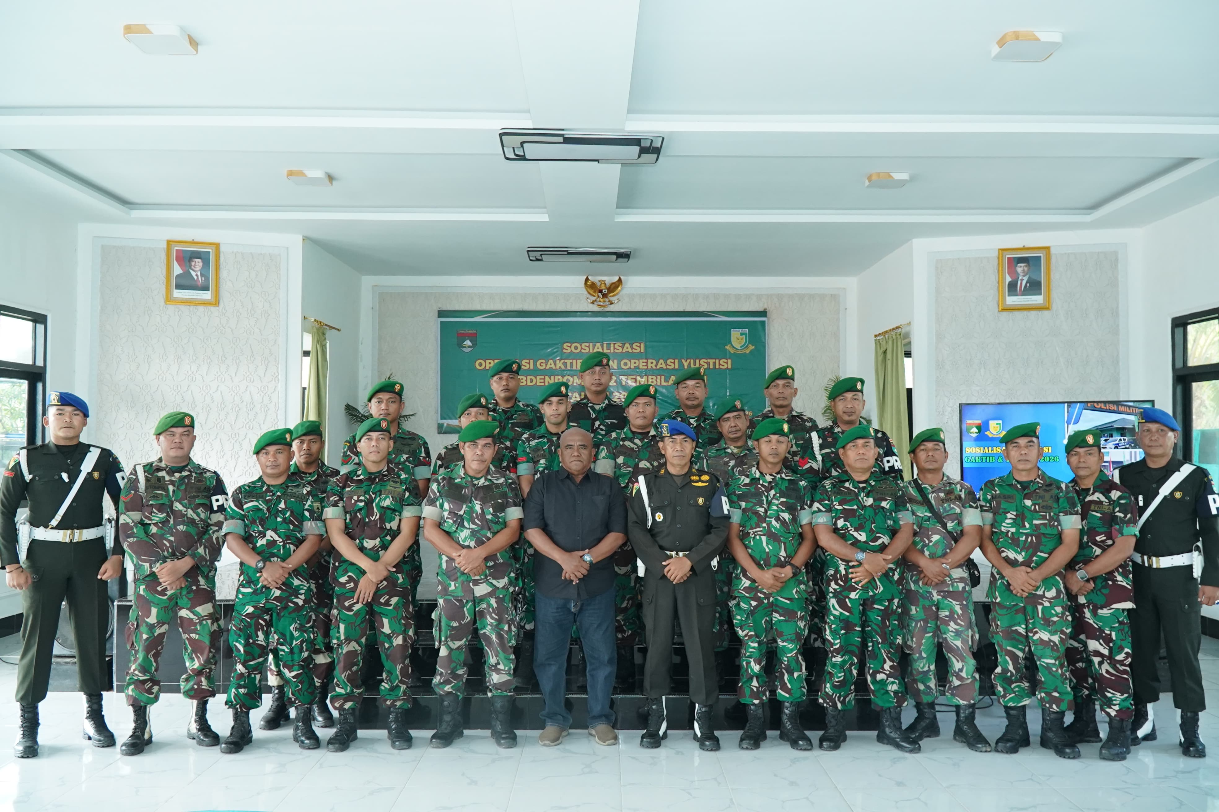 TEMBILAHAN – Dalam rangka meningkatkan disiplin, kepatuhan hukum, serta ketertiban di lingkungan prajurit, personel Kodim 0314/Inhil mengikuti sosialisasi Operasi Gaktib dan Operasi Yustisi Tahun 2026 yang digelar oleh Subdenpom 1/3-2 Tembilahan di Makodim 0314/Inhil, Selasa (14/4/2026).
