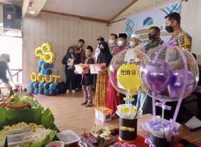 TEMBILAHAN - Terima hadiah berbentuk minyak goreng dari Kapolres Inhil AKBP Dian.