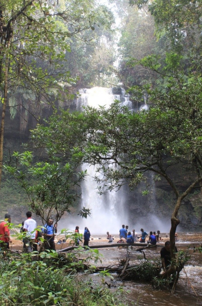 Selain itu, suasana hijau yang asri di sekitar air terjun, juga pepohonan rindang yang bisa dijadikan tempat berteduh membuat masih banyak orang yang senang berkunjung ke air terjun tersebut.