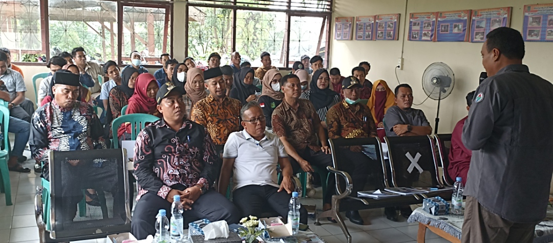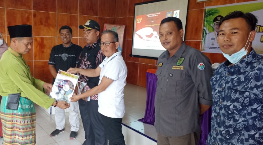 Tampak sosialisasi dimulai dengan buku PTOPKD secara simbolis yang diterima oleh dua desa yakni, desa Sekara dan Desa Talangjangkang.