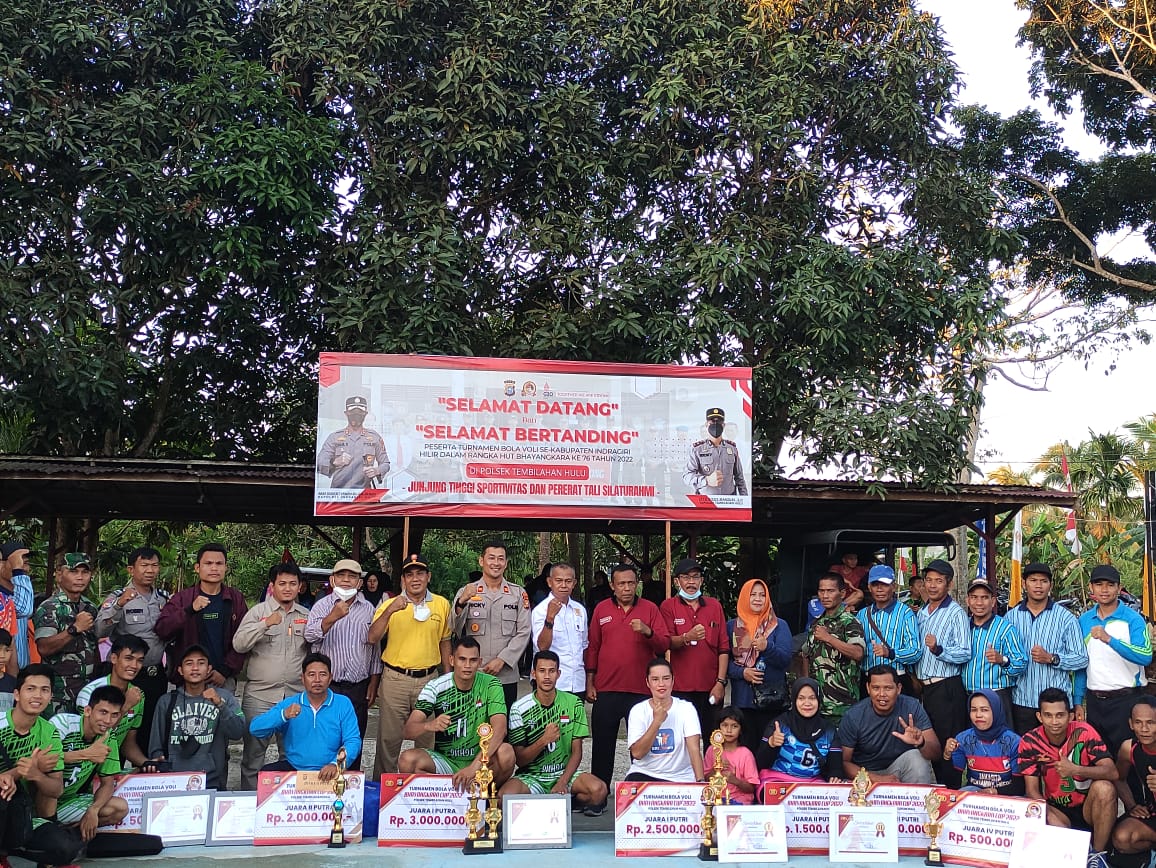 TEMBILAHAN – Turnamen Volly Ball Se-kabupaten Indragiri Hilir (Inhil) dalam rangka HUT Bhayangkara ke-76 Polsek Tembilahan Hulu Polres Inhil telah berkahir, Rabu (6/7/2022) sore.
