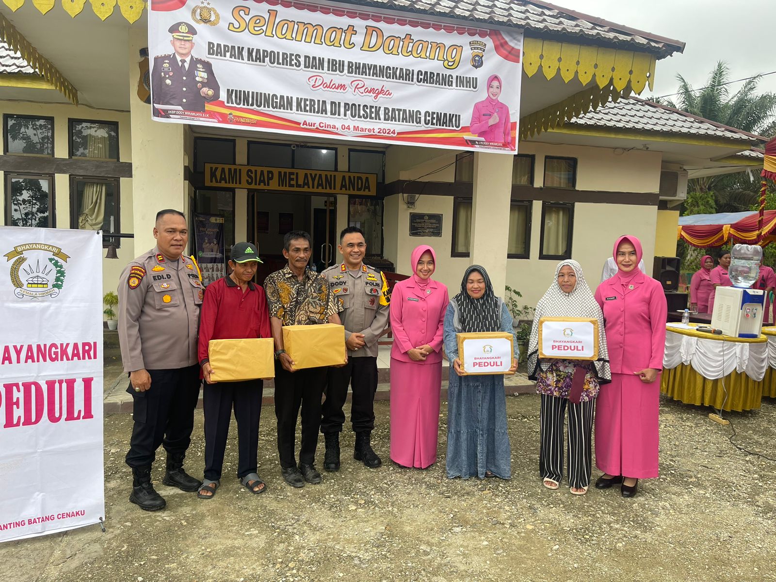 TRANSMEDIARIAU.COM, INHU - Kepala Kepolisian Resor (Kapolres) Indragiri Hulu (Inhu), Polda Riau, AKBP Dody Wirawijaya didampingi Ketua Bhayangkari Cabang Polres Inhu, Ny. Lya Dodi Wirawijaya berkunjung ke Polsek Batang Cenaku, Senin (4/3) pagi.